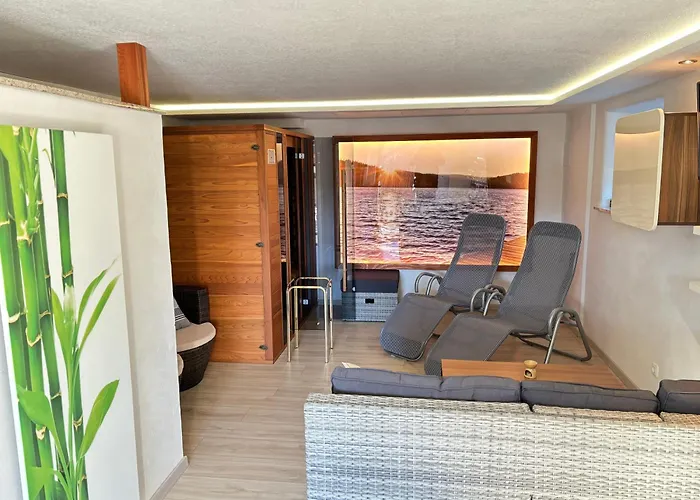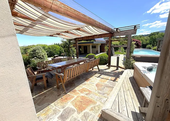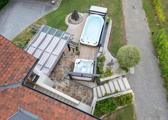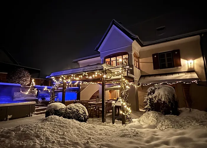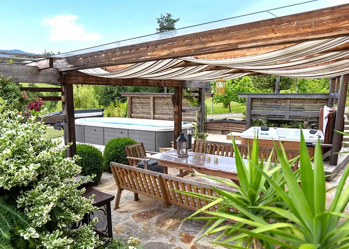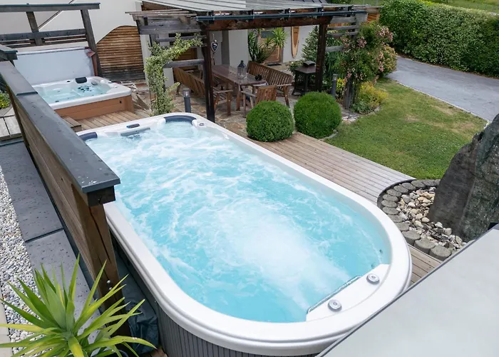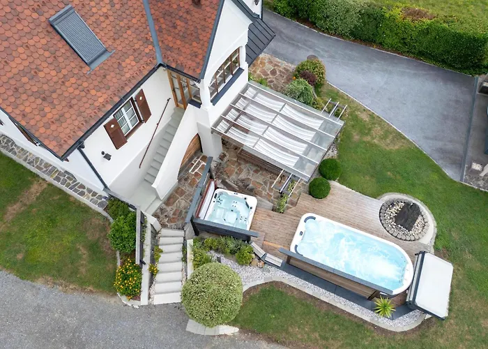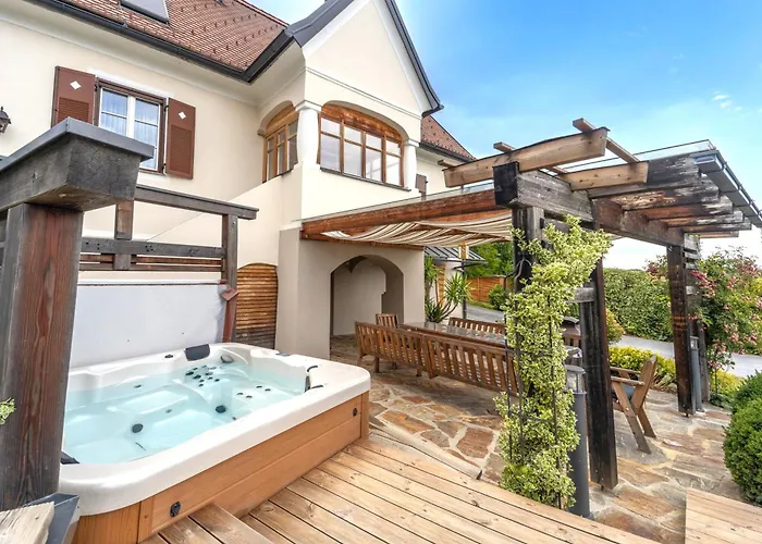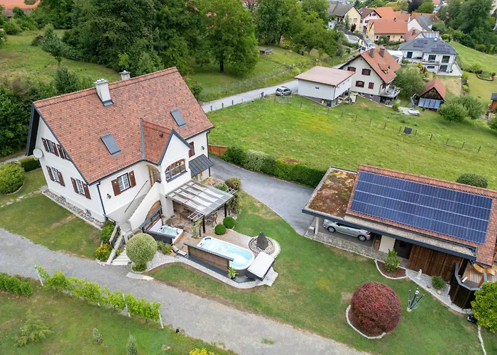 Das "Ferienhaus Eibiswald" Landhaus Refugium Im Schilcherland - Sauna Und Spa med 2 sovrum erbjuder närhet till turistattraktioner, till exempel Pfarrkirche Maria im Dorn, som ligger ungefär 6 minuters promenad bort. Villan med 2 badrum erbjuder bubbelpool och bastu för gästernas avkoppling.